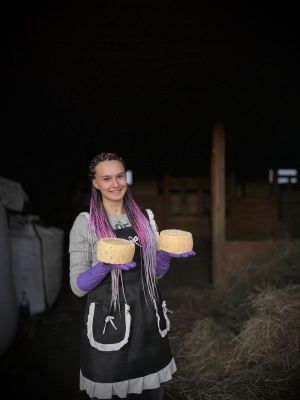 У 2022 році Чернігівщина пережила кілька місяців окупації та зазнала серйозних пошкоджень електромереж – подекуди світла не було по кілька діб. Багато мешканців виїхали з регіону, однак подружжя Грициків свідомо залишилося, щоб зберегти й розвивати господарство. Попри труднощі з доглядом за тваринами та заготівлею кормів, родині вдалося втримати виробництво й поступово зміцнити молочний напрям. Нині на господарстві утримують 7 дійних корів, 2 — у запуску, 2 — нетелі; разом із молодняком та бичками це близько 30 голів ВРХ. Окрім того, на фермі є 10 коней (7 із них доглядають тимчасово, поки господарі не повернуться додому), а також вирощують свиней, використовуючи для відгодівлі сироватку від переробки молока. Все молоко переробляють безпосередньо на фермі, оскільки продаж молоко-сировини не покриває витрат на корми, більшість із яких доводиться закуповувати. Тож особливу увагу фермери присвячують виготовленню крафтових сирів.
